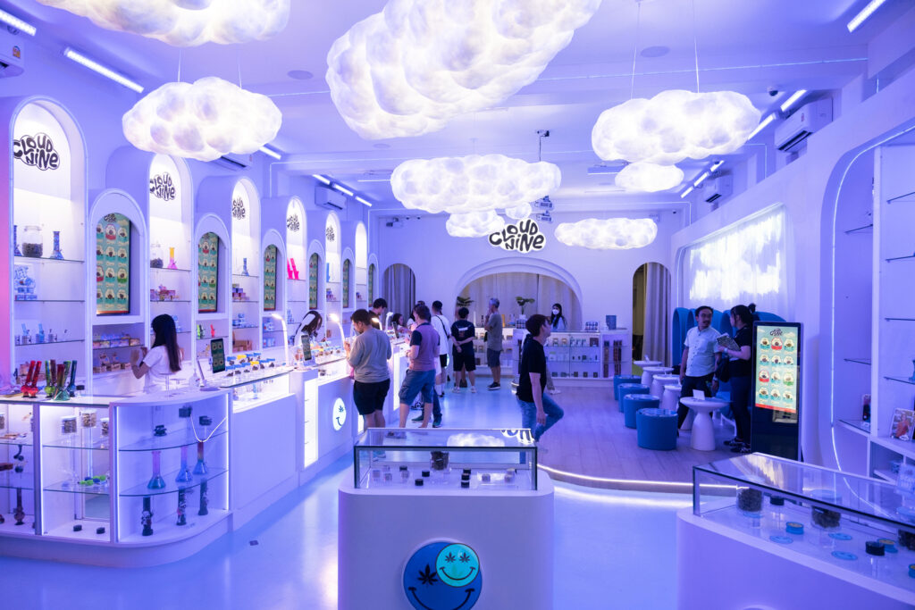 The name Cloud Nine conjures up images of bliss and euphoria, and it’s now the name of Bangkok’s latest one-of-a-kind dispensary. Cloud Nine captures the vibe of its very name by offering a minimalistic retro-futurist experience engulfing the guest in pure white with accents of sky blue.